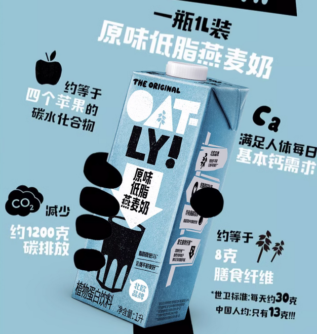 OATLY的燕麥奶以其健康、美味和可持續的特點在市場上脫穎而出。富含膳食纖維、低脂肪、無乳糖等特點滿足了消費者對健康飲品的需求。